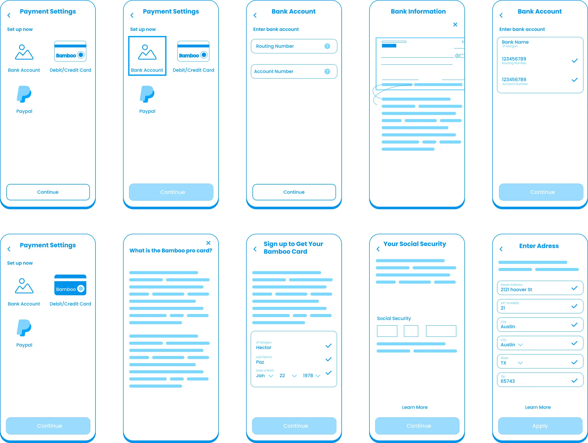 Payments: Some local trades do not have bank accounts. Since it was essential to pay them on time, and it wasn’t scalable to drive around handing checks, we created an option to have a Bamboo card through the app. This was a third-party integration with ProPay.